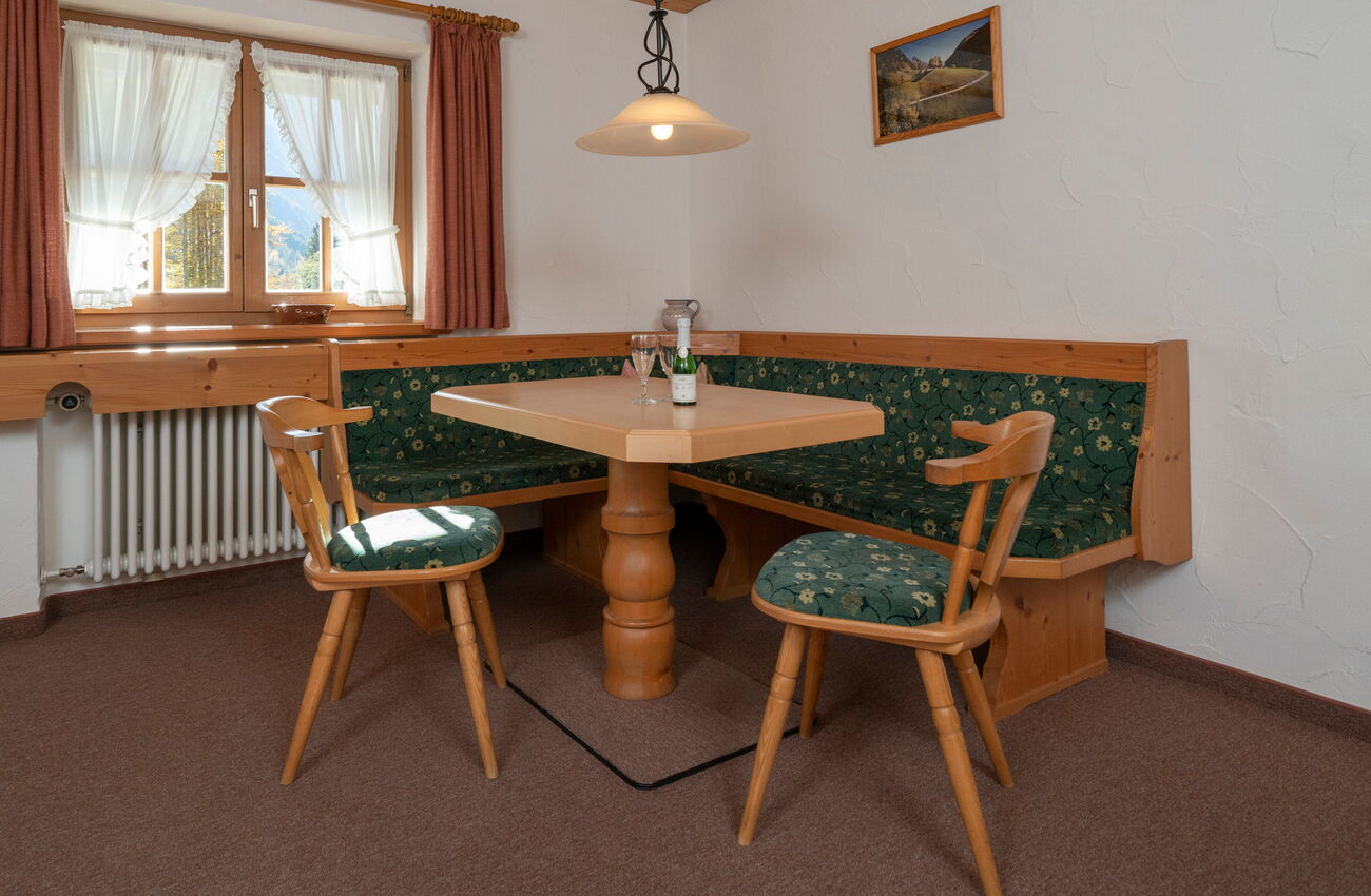 Stilvolle und großzügige eingerichtete Ferienwohnungen mit getrenntem Wohn- und Schlafraum, Kochnische, Essecke, Du und WC liegt im ersten Stock.